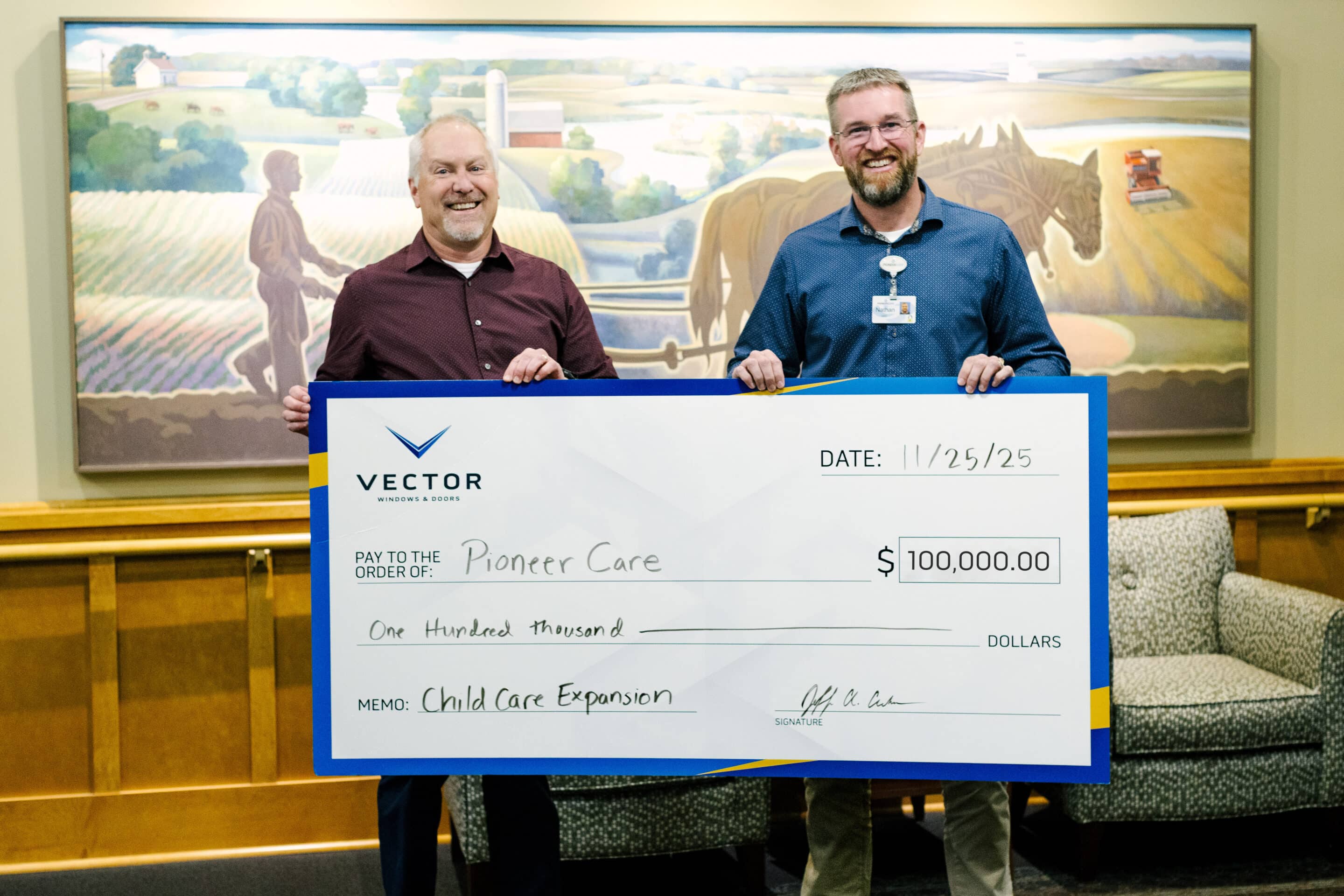 At Vector Windows, our purpose is clear: improving the quality of people’s lives. Today, we’re proud to live that purpose by supporting the Child Care Expansion Project led by PioneerCare, an initiative dedicated to creating more access to quality child care for families in our community with a donation of $100,000.